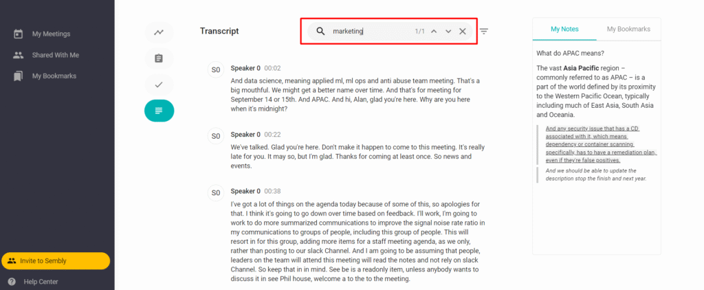 In my testing, Sembly delivered on its promise of 99%+ accuracy across 48 languages. Even with heavy accents, background noise, and multiple speakers talking over each other, it consistently outperformed competitors I’d tried previously. During a particularly chaotic brainstorming session with seven team members, it correctly identified every speaker and captured rapid-fire idea exchanges that I would have completely missed manually.